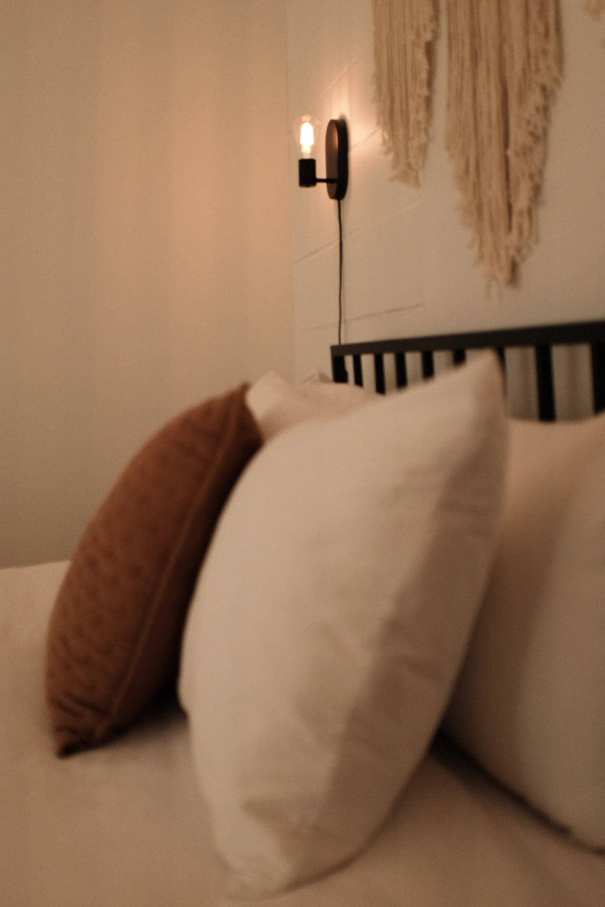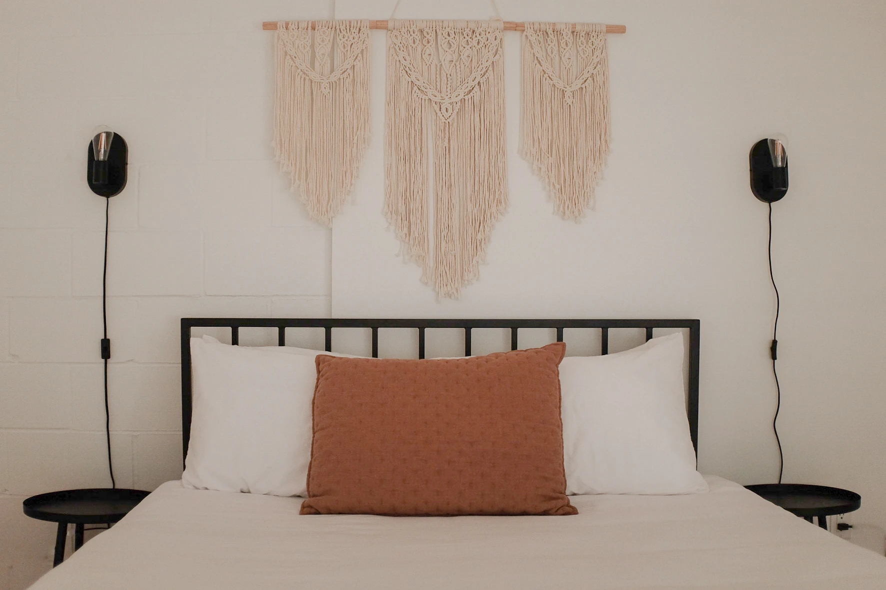 This spacious bedroom alcove is prepared for comfort and relaxation with cotton sheets, a queen size memory foam hybrid mattress, and platform bed frame. Plus, elegant bedside table and lighting, and a wardrobe equipped with an iron, ironing board, and hangers.