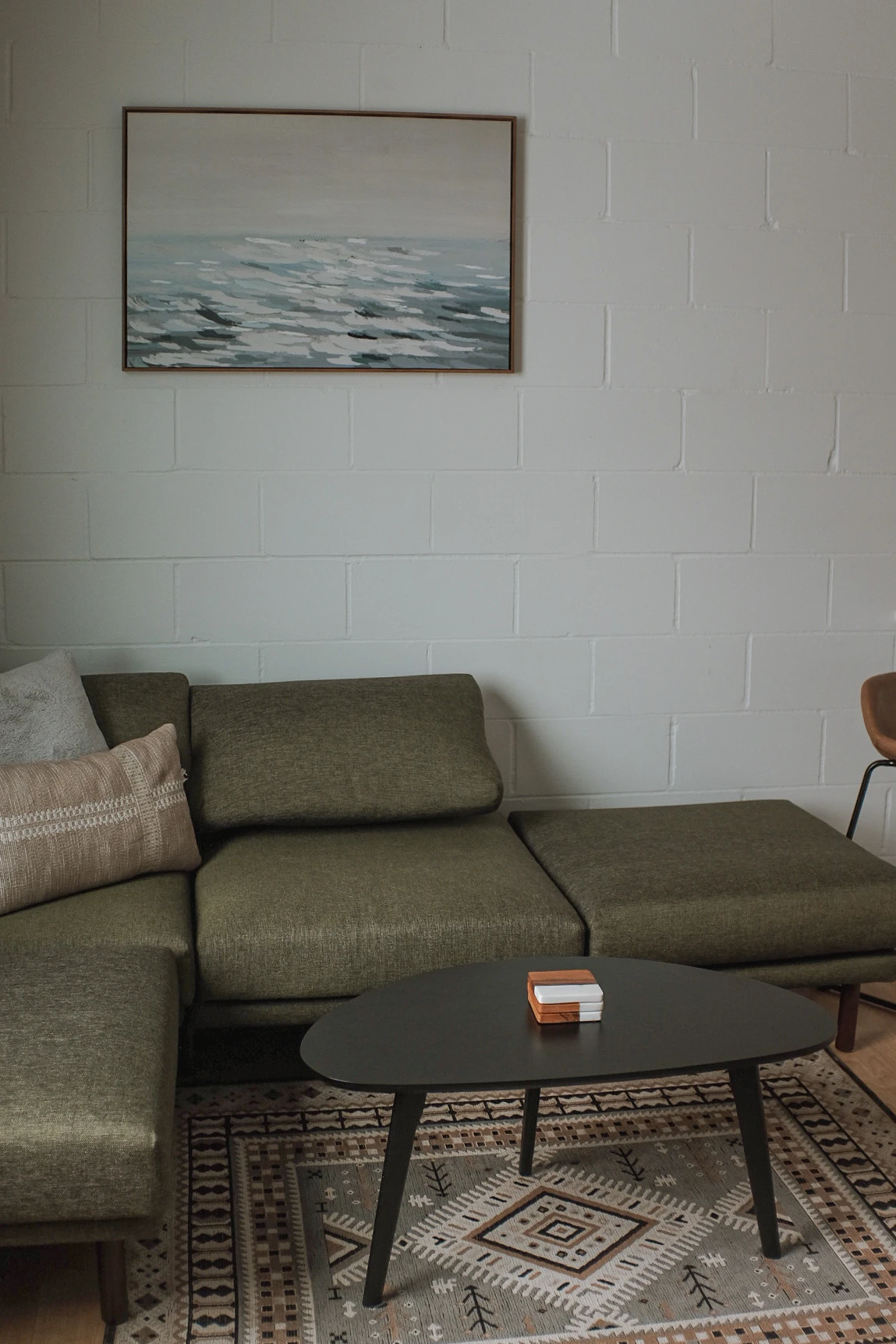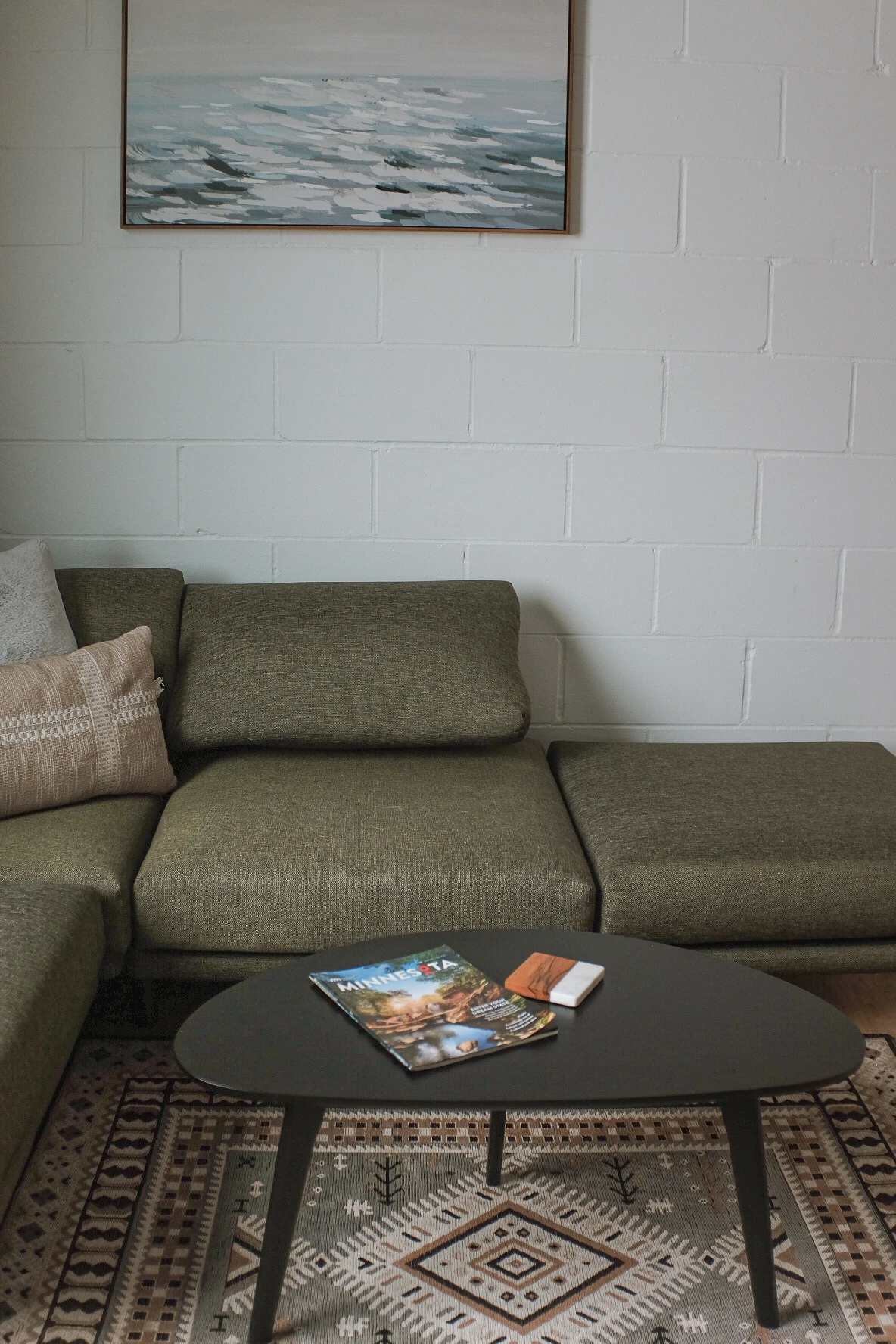 Enjoy a view while sipping coffee on the couch or enjoying a meal at the dining counter. The couch, soft rug and cozy throw blanket will make you snuggle up and enjoy the fall colors.